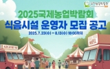 전라남도 윤규진 기자2025. 08.04[한국저널뉴스](재)전라남도국제농업박람회는 2025 국제농업박람회 식음시설 운영자를 오는 13일까지 3주간 모집한다고 밝혔다. 이번 모집은 주제전시관인 농업미래관 옆 뷔페관(288석·600㎡)과 행사장 내 푸드트럭을 대상으로 진행한다. 전남·광주지역 주소를 두고 해당 업종을 정상적으로 운영 중인 업체면 신청할 수 있다. 자세한 내용은 국제농업박람회 누리집의 공고문에서 확인할 수 있으며, 궁금한 사항은 국제농업박람회 행사운영팀으로 문의하면 된다. 박관수 전남도국제농업박람회 사무국장은 “성공적 행사를 위해서는 먹거리가 매우 중…