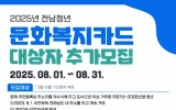 여수시 윤규진 기자2025. 08.04[한국저널뉴스]여수시는 ‘2025년 전남청년 문화복지카드 지원사업’ 대상자를 8월 한 달간 추가 모집한다. ‘전남청년 문화복지카드 지원사업’은 지역 청년에게 연간 25만 원의 문화복지비를 지원해 문화 향유 기회를 확대하기 위한 사업으로, 2022년부터 시행되고 있다. 여수시는 올해 상반기 16,649명의 청년을 대상자로 선정했으며, 이번 추가 모집을 통해 상반기에 신청하지 못한 청년 2,203명을 추가로 선정할 계획이다. 신청 대상은 2023년 8월 1일 이전부터 전남 도내에 2년 이상 주소를 두고 있는 1997년부터 200…