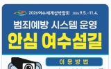 여수시 윤규진 기자2025. 08.04[한국저널뉴스]여수시가 도서지역의 치안 사각지대를 해소하기 위해 전국 최초로 범죄예방시스템을 구축하고 8월부터 남면, 화정면, 삼산면 등 도서지역에서 운영을 시작한다. 이번에 도입된 범죄예방시스템은 시시티브이(CCTV) 설치가 어려운 도서지역의 특수한 여건을 보완하기 위한 것으로, 위급상황 시 개인의 스마트폰을 이동형 시시티브이(CCTV)처럼 활용할 수 있는 기능이다. 시스템은 여수시 CCTV통합관제센터와 실시간 연계돼 상황 발생 시 신속한 대응이 가능하다. 사용자가 스마트폰 화면에서 ‘영상전송’을 누르면 현장 영상이 관제센…